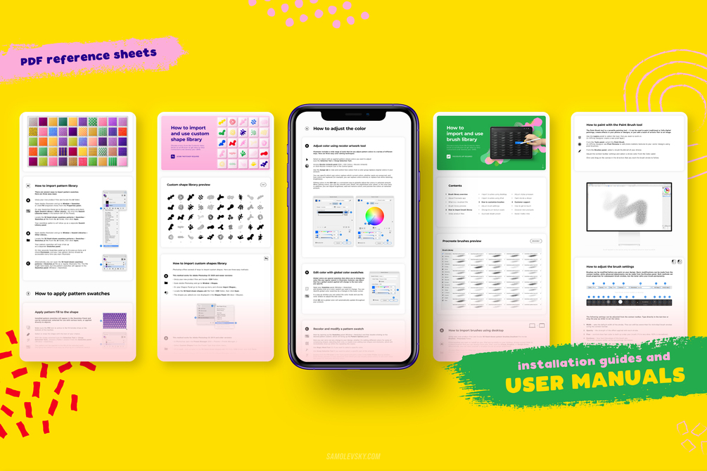 Samolevsky.com/10 - Handmade patterns bundle - 300 seamless patterns, brushes, and shapes
