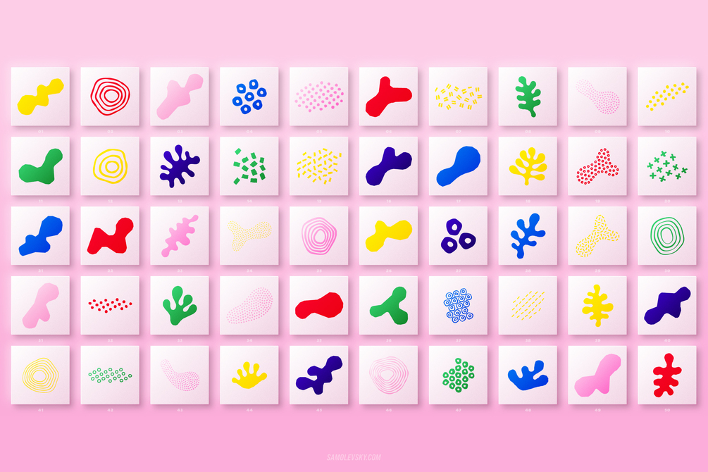 - 50 PNG Files (Hi-res 5000×5000px): With artistic shapes isolated on a transparent background.