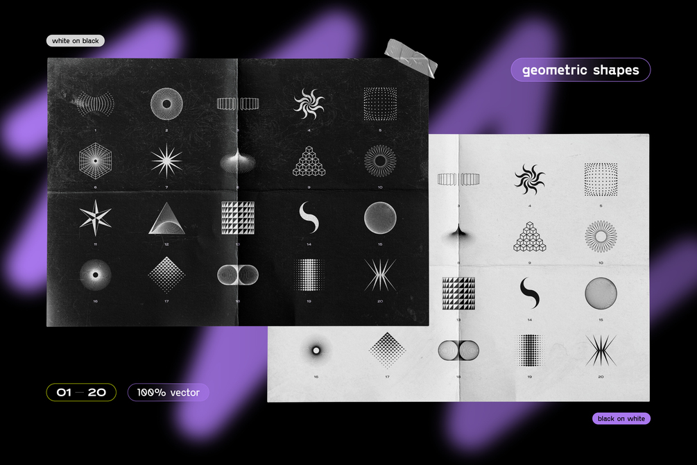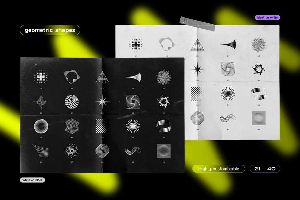 Ideal for poster design, album art, branding, and much more, the Geometric Shapes Pack for Poster and Cover Design is a must-have for designers looking to explore new concepts and ideas, making your work stand out in a saturated market.