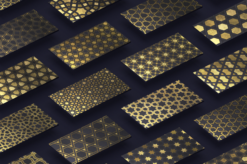This collection is a testament to the intricate beauty of Islamic geometric art, skillfully adapted for modern applications such as packaging, stationery, metal, wood, and textile embellishments.