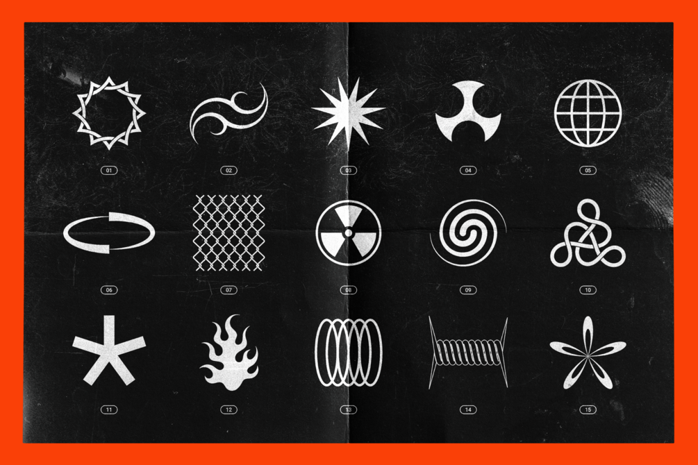 Inspired by rebellious acid rave visual aesthetics of the 2000s, this Chrome & vector abstract shapes bundle comprises over 200 trendy design elements ready to be dropped into your creative project.