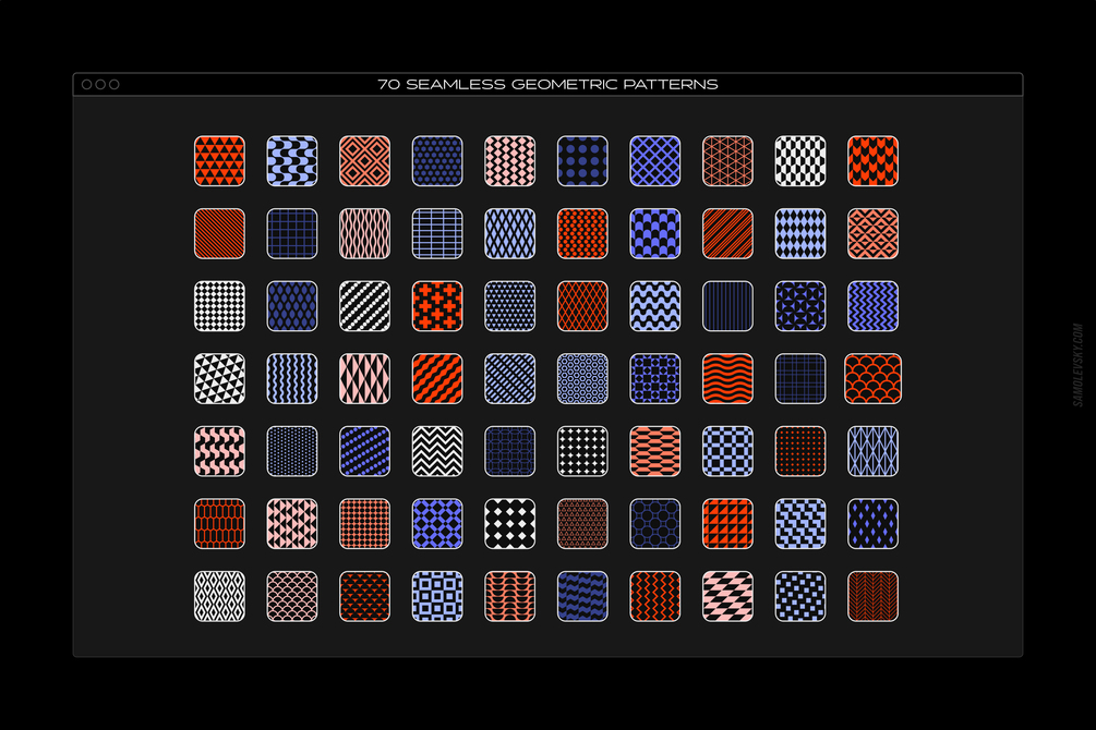 Introducing the Vibrant Geometric Seamless Patterns Collection, a captivating array of 70 multicolor minimalistic patterns, each meticulously crafted to bring a burst of energy and decorative touch to your design projects.